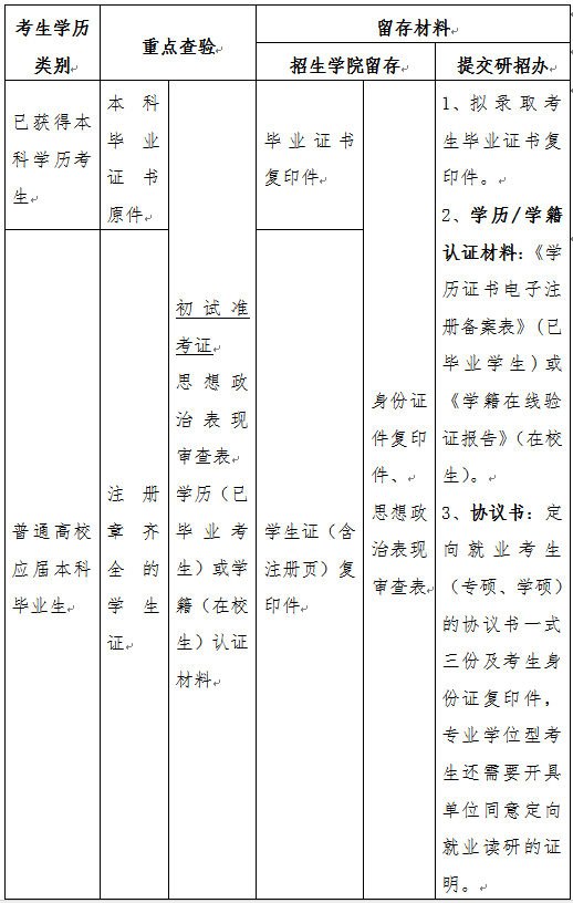 重点检查考生的学历情况是否符合报考条件、是否与网上报名时填写的信息一致、思想政治审查是否合格。对于不符合报考条件的考生,取消其考试资格及成绩,不得录取。根据教育部要求,未通过学历(学籍)审核的考生不得录取。
