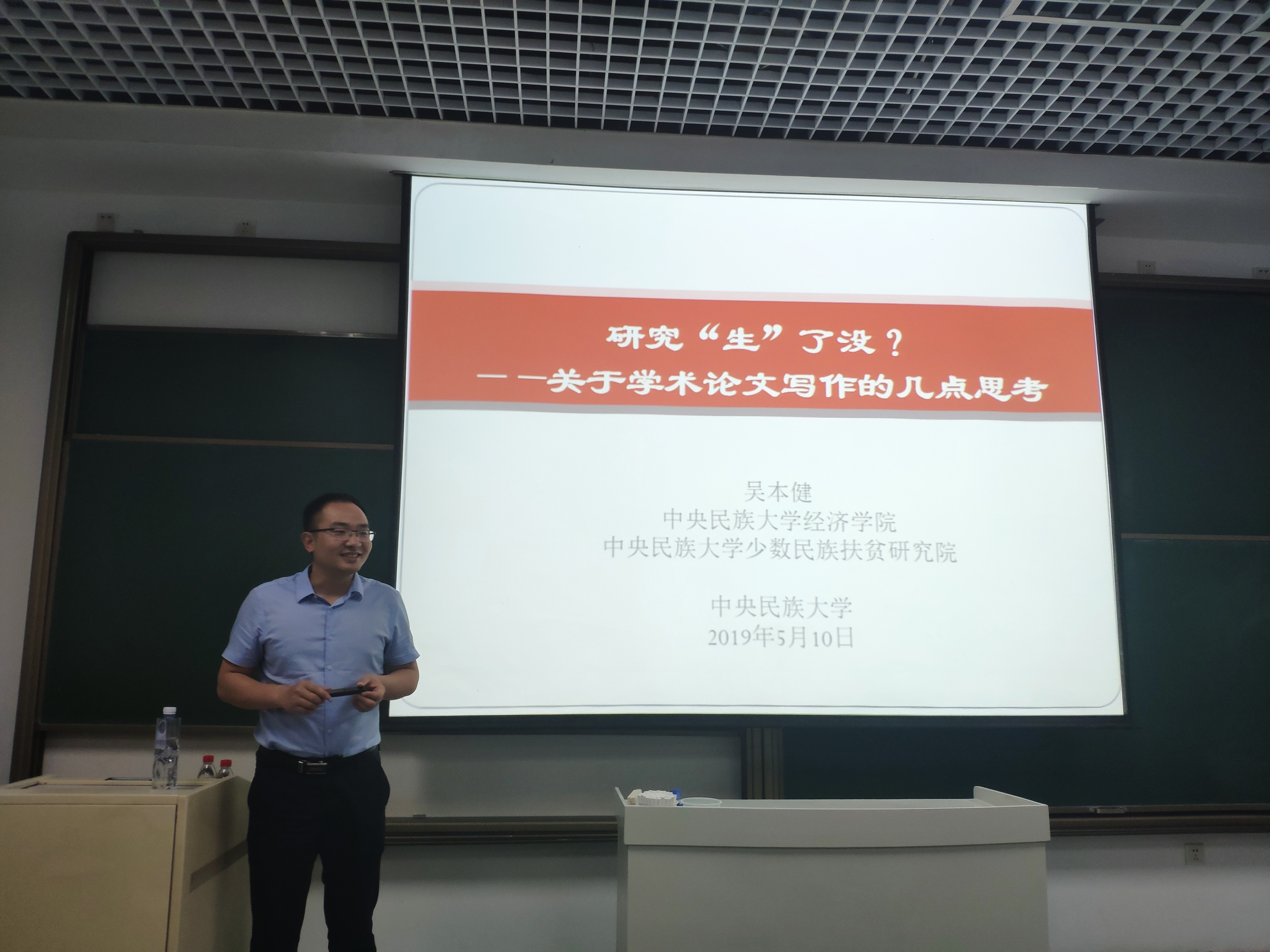 2019年5月10日晚上19时30分,来利国际旗舰厅在文东205教室成功举办了第五期“财经圆桌派”学术交流活动。本期交流活动邀请到来利国际旗舰厅副教授、硕士生研究生导师吴本健老师作为主讲人,分享他对论文写作的一些心得。来利国际旗舰厅2018届全体硕士生参与了此次学术交流活动。