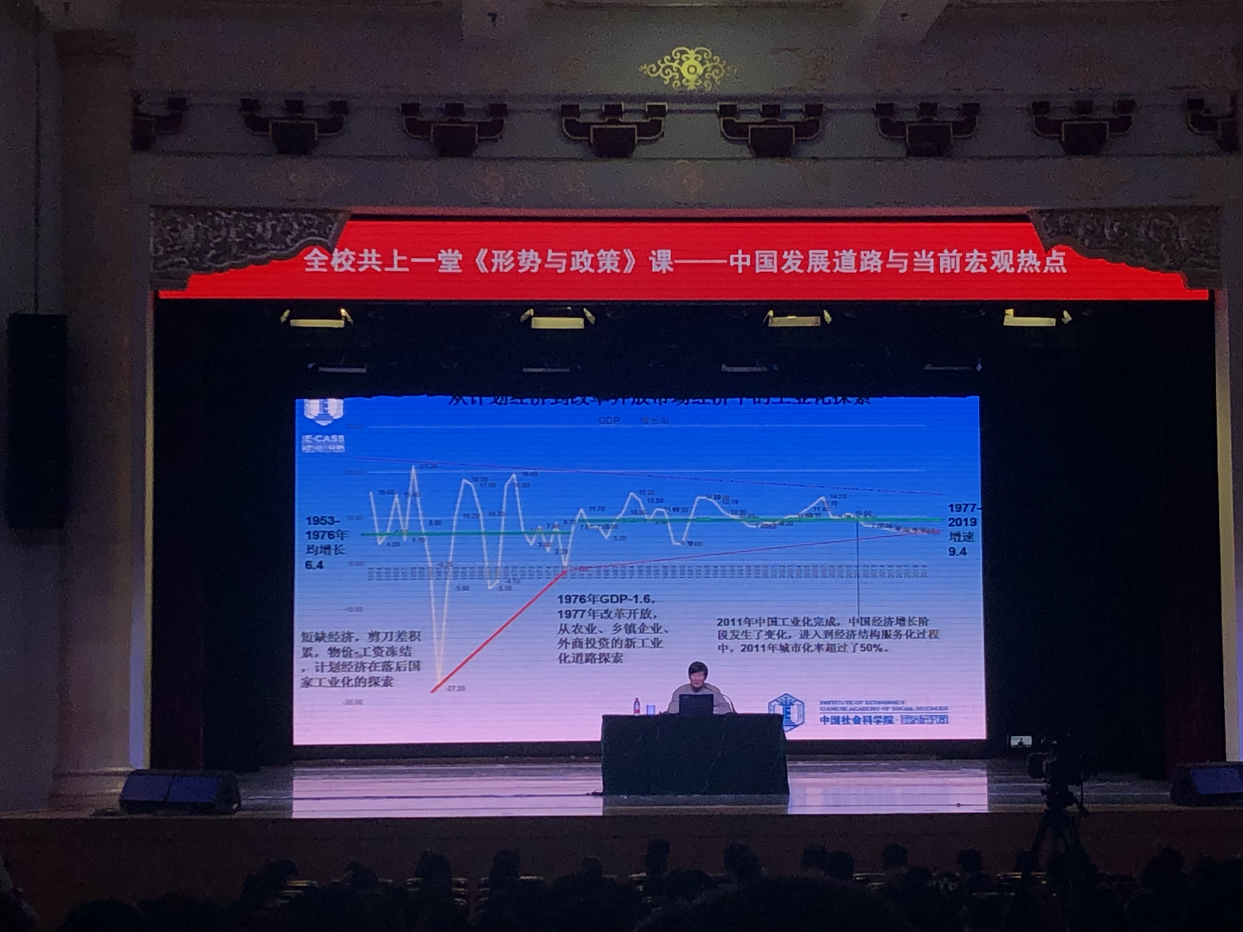 为使当代老员工更好地理解中国的发展历程以及当今宏观热点问题,5月22日晚,来利国际旗舰厅大一至大三全体员工齐聚大礼堂,共同聆听“形势与政策”课——“中国发展道路与当前宏观热点”讲座。现国家金融与发展实验室副主任、原中国社会科公司经济研究所副所长、二级研究员张平为此次大课堂的主讲人。