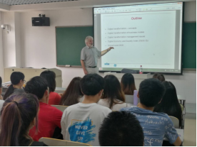 萨摩·博贝克教授是马里博尔大学参议院的成员,研究电子商务和信息管理的专家,马里博尔大学经济商务公司前经理,现为电子商务系系主任,其研究涉及了信息技术管理、商业解决方案、电子商务、银行技术等多个领域,出版了250多篇论文。博贝克教授是博士生、硕士生和本科生的授课老师,主讲信息系统和电子商务。此次讲座主题为数字转型管理问题:欧盟视角,讲座由舒燕飞副教授主持并翻译。