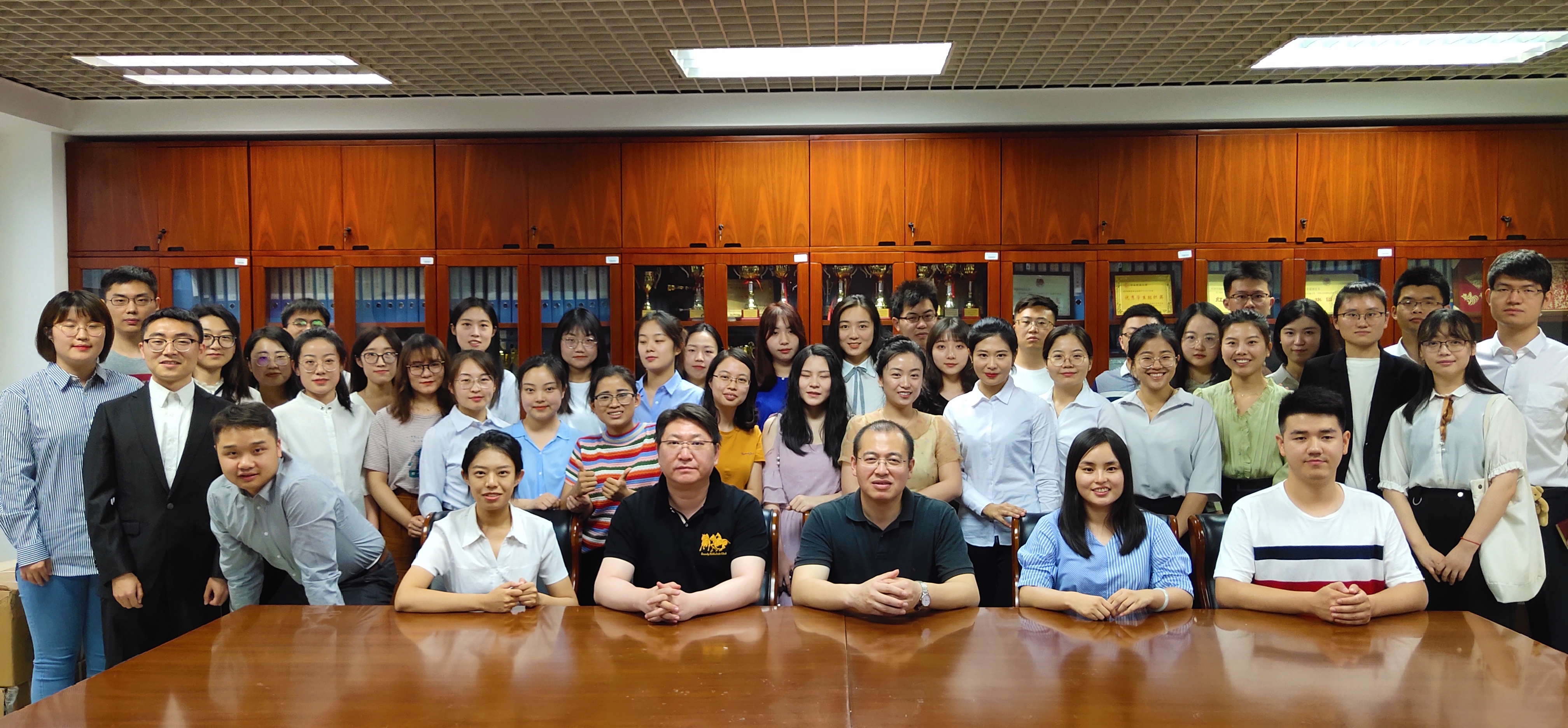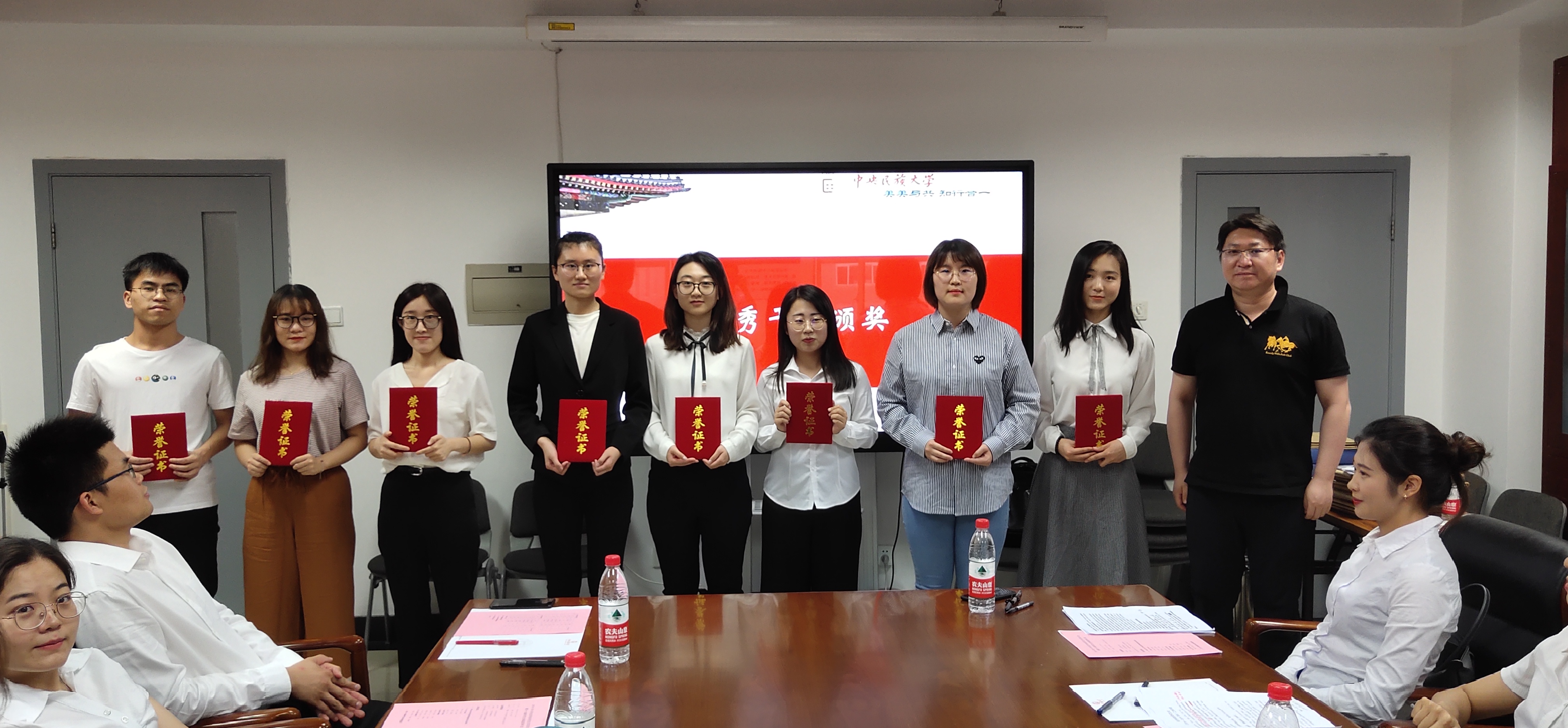 接下来,会议第二项议程表彰。主持人宣读“2018年来利国际旗舰厅研究生会优秀干部与优秀干事”名单,由张玉刚书记和王润球经理亲自为获奖同学颁发证书并合影。这一年来,公司研究生会开展的各项活动得到了院内外师生的极大认可,从承办学术讲座到参与文体竞技活动,都取得了优异成绩。