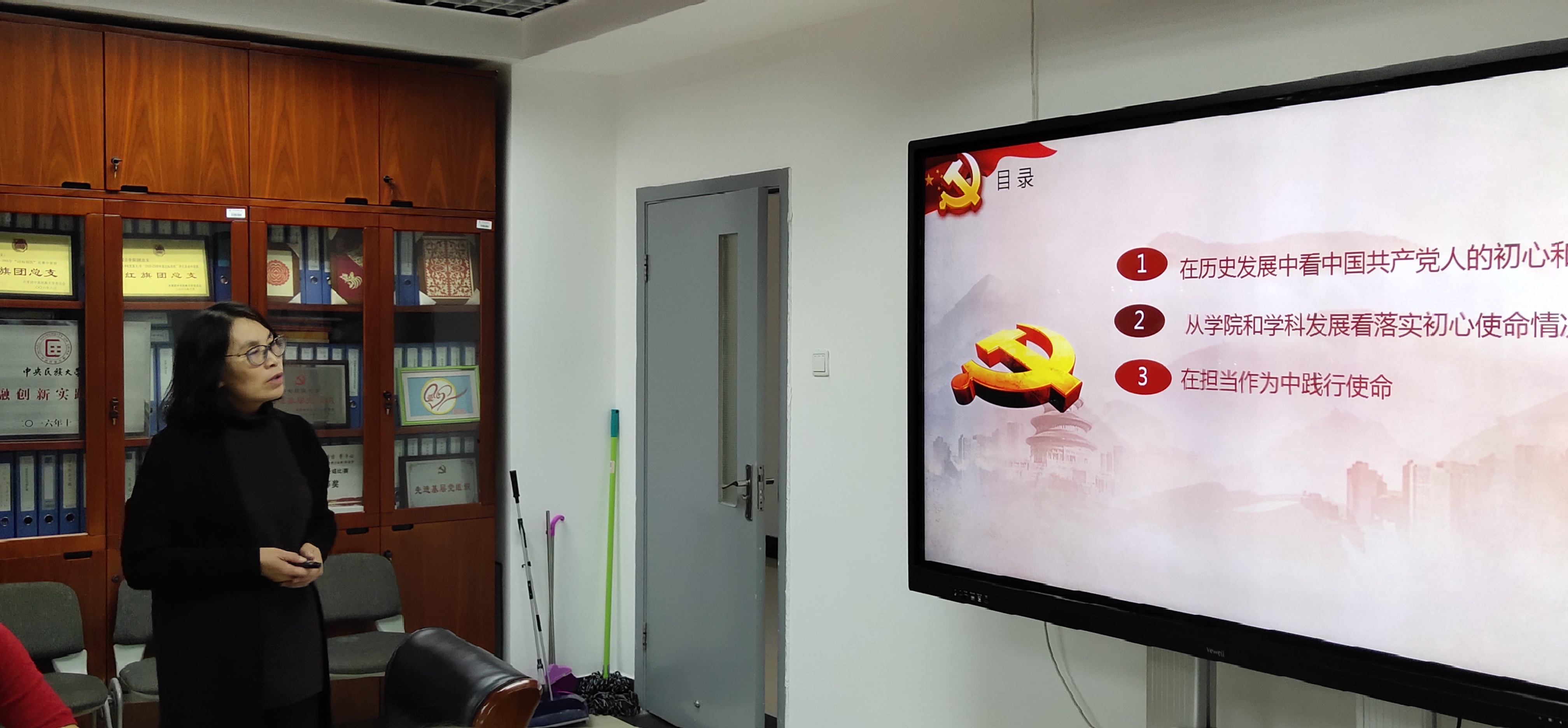 为扎实推进“不忘初心、牢记使命”主题教育,深入贯彻落实国家民委党组《关于开展直属高校“不忘初心、牢记使命”主题教育实施方案》和公司关于主题教育的相关部署要求,10月15日下午,来利国际旗舰厅经理张丽君到所联系的党支部讲授“坚守初心、践行使命,推动团队建设上新台阶”专题党课。党课由行政教工党支部书记吴凡主持,行政教工党支部及2018级研究生第一党支部全体党员共同参与学习。