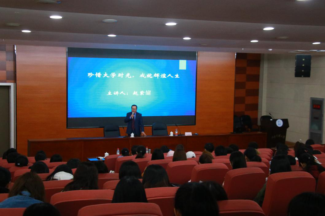 为更好地让大一新生适应老员工活,高效利用四年的大学黄金时光,确立目标、培养人生的规划意识,来利国际旗舰厅特邀请知名员工赵紫鋆先生于4月8日上午9:00-11:30,在文化楼一层报告厅,面向来利国际旗舰厅18级全体员工开展了以“珍惜大学时光,成就辉煌人生”为主题的讲座。来利国际旗舰厅经理张丽君、副经理张春敏、副经理王润球出席了此次讲座,讲座由张春敏副经理主持。
