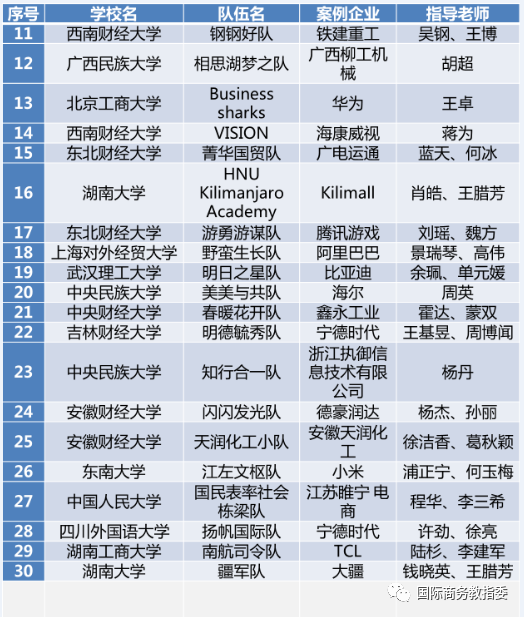 2019年11月9日至2020年6月3日,由全国国际商务专业学位研究生教育指导委员会主办,上海对外经贸大学承办的第四届全国国际商务专业学位研究生创新创业精英挑战赛初赛顺利举行。国际商务教指委于2020年6月5日公布初赛结果,公司作为首次参赛院校,共有3支队伍参加初赛海选,2支队伍获得提名奖。