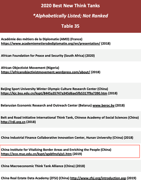 近日,美国宾夕法尼亚大学研究编写的《全球智库报告2020》发布。中国兴边富民战略研究院(下称“研究院”)入选“2020最佳新智库”。