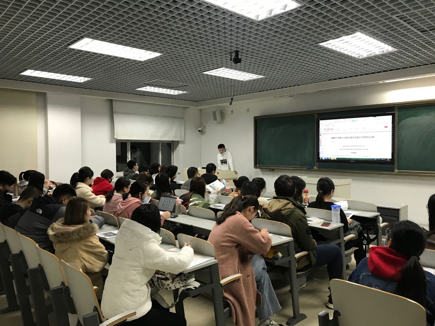 会议伊始,潘登同志指出,前不久召开的十九届五中全会充分肯定了十九届四中全会以来中央政治局的工作,高度评价了决胜全面建成小康社会取得的决定性成就,并提出我国当前和下一时期的发展目标,需要我们认真加以学习。学习过程中,支部党员同志共同研读十九届五中全会公报,梁瑞欣同志认为此次会议深入分析了我国发展面临的国际国内形势,明确提出了“十四五”时期我国发展的指导方针、主要目标、重点任务、重大举措,集中回答了新形势下实现什么样的发展、如何实现发展这个重大问题。杨庄立同志认为全会谋划的发展目标既高瞻远瞩又脚踏实地,作为中共预备党员,我们唯有甘于奉献、勇于担当,方能不负青春,为实现远景目标贡献自己的力量。最后,潘登同志概括性总结出此次公报的重要内容,并提出对同学们利用空余时间进行独立自主学习的期望。