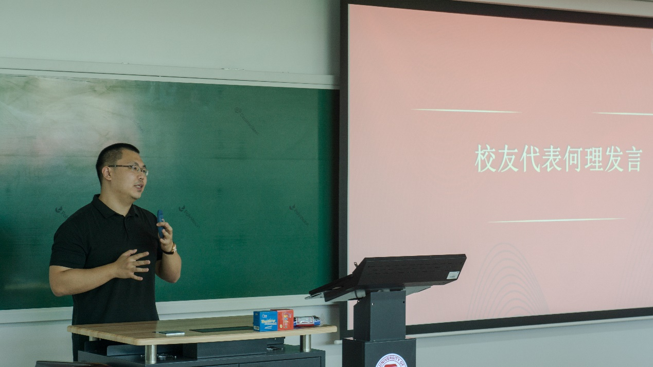 北京止于至善投资管理有限公司总经理何理作为员工代表发言。他结合自身求学、工作经历,和大家分享了《不要做茫然之潜行者》的主题演讲,强调自制力和自驱力的重要性,勉励同学们加强学习沟通、善于择友而交、培养独立意识、做到知行合一。