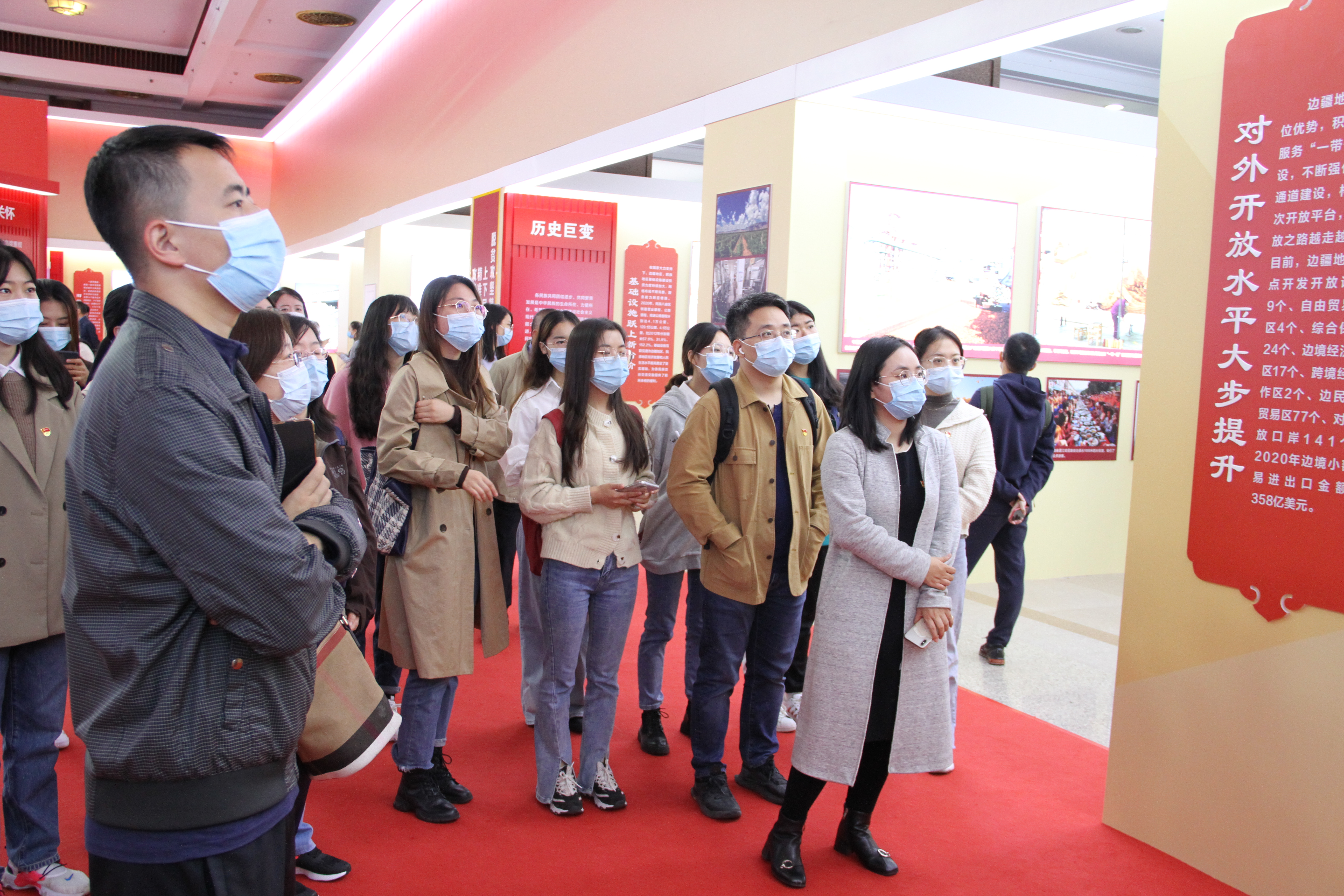 全体参观师生认为中国共产党领导各族群众取得脱贫攻坚全面胜利和兴边富民的伟大成就是非常震撼的,表示要在党的领导下坚定不移地走中国特色解决民族问题的正确道路,同心协力,不懈奋斗,共创中华民族的美好未来!