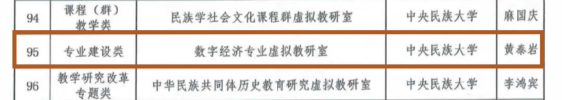 近日,教育部公布了首批虚拟教研室建设试点名单,中国兴边富民战略研究院经理黄泰岩教授领衔的“数字经济专业虚拟教研室”入选教育部首批虚拟教研室建设试点(专业建设类)。