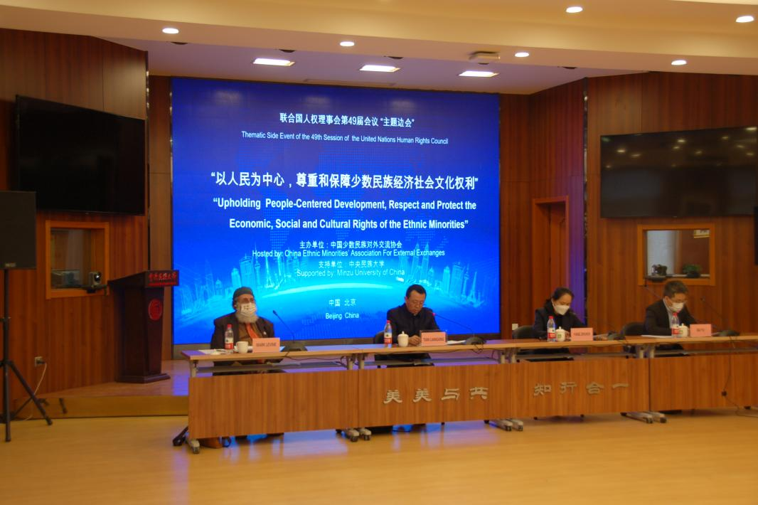 会议由中国少数民族对外交流协会副会长田联刚主持。他表示,中国奉行以人民为中心的人权理念,坚持民族平等,协调增进全体人民的各项权利,不断增强各族人民的获得感、幸福感、安全感。中国人权的主张和实践,符合中国国情,遵循《联合国宪章》的宗旨和原则。