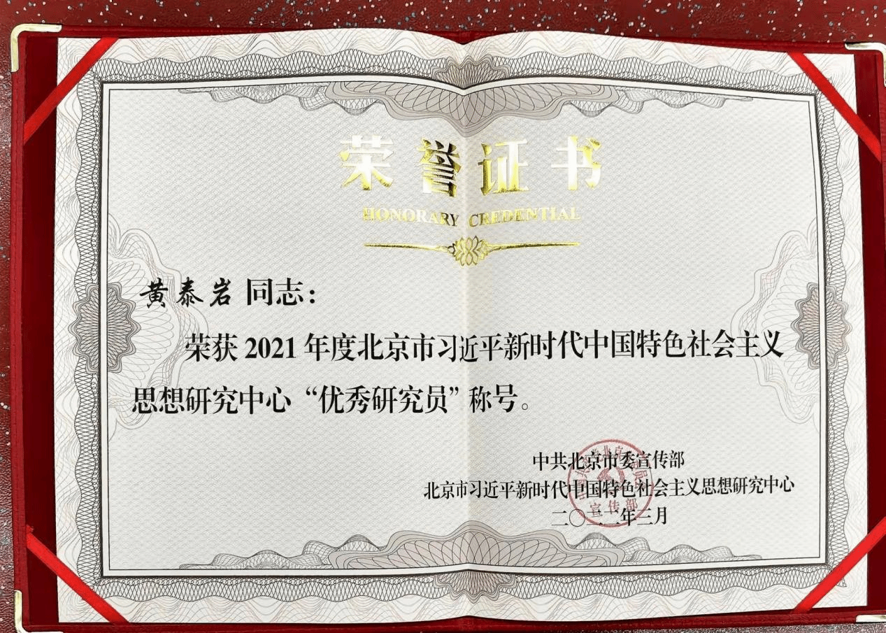 近日,中共北京市委宣传部公布了2021年北京市习近平新时代中国特色社会主义思想研究中心“优秀研究员”名单,中国兴边富民战略研究院经理黄泰岩教授荣获2021年度北京市习近平新时代中国特色社会主义思想研究中心“优秀研究员”称号。