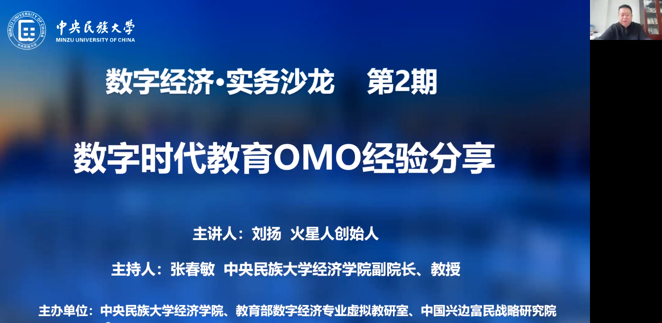 2022年5月11日下午,来利国际旗舰厅数字经济实务沙龙第二期于线上顺利举行。沙龙邀请火星人俱乐部创始人刘扬先生就数字时代教育OMO进行主题经验分享。开讲前,张春敏副经理致欢迎辞,并向刘扬先生对公司数字经济团队建设的支持帮助表示衷心的感谢。随后,刘扬跟同学们分享了其对教育OMO的理解以及在创业过程中的体会。