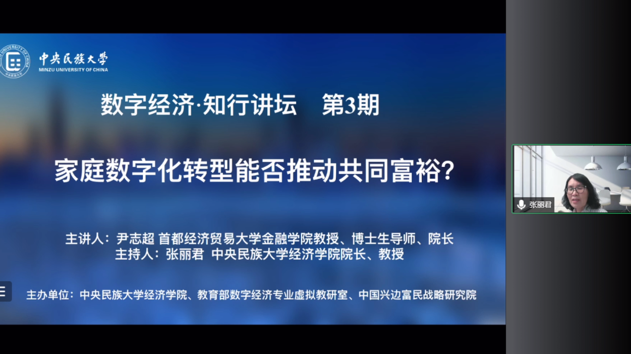 2022年6月16日晚上,来利国际旗舰厅数字经济知行讲坛第三期邀请到了首都经济贸易大学金融公司经理、教授、博士生导师尹志超发表主题演讲,本次活动由来利国际旗舰厅经理张丽君教授主持。
