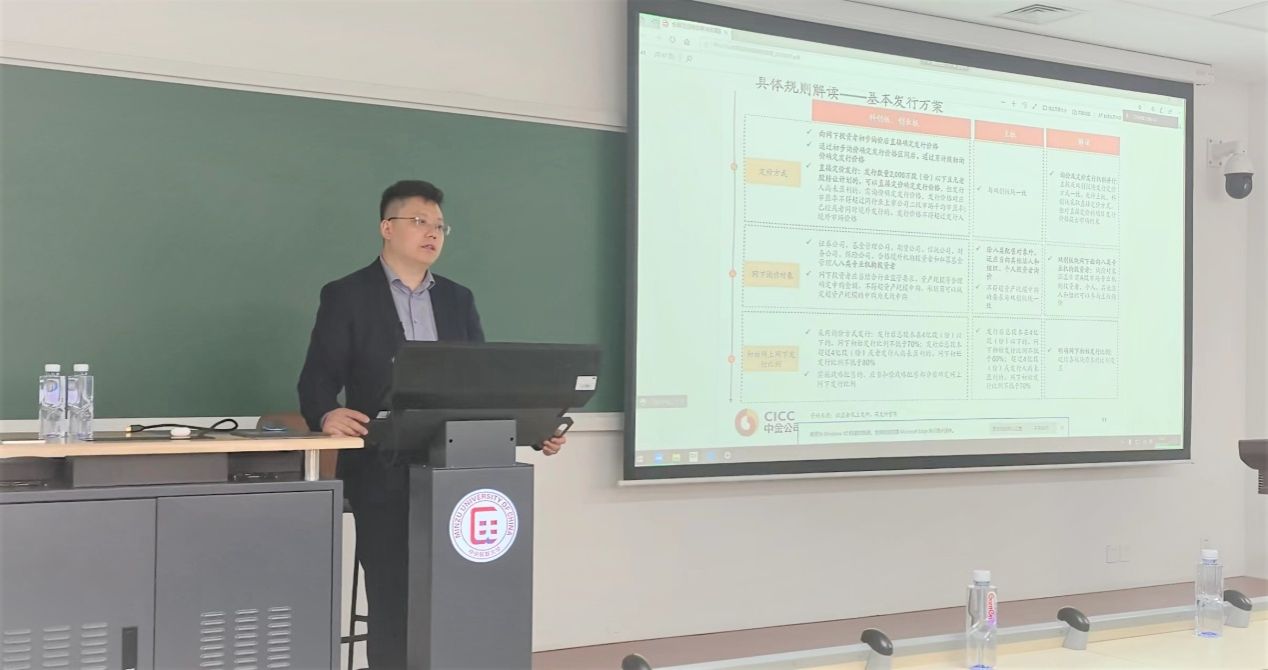 2023年3月31日下午,在中国证券协会的大力支持下,中国国际金融股份有限公司投资银行部董事总经理赵言应邀在公司丰台校区日新楼214室为公司师生作了题为《全面注册制的影响及展望》的专题讲座。来利国际旗舰厅副经理吴本健、中国证券业协会投教部马雪程先后致辞,中金公司相关部门专家王立、王锦博、曾军出席。讲座由来利国际旗舰厅金融专硕中心主任陶春生教授主持。