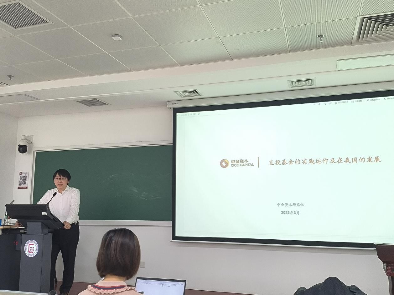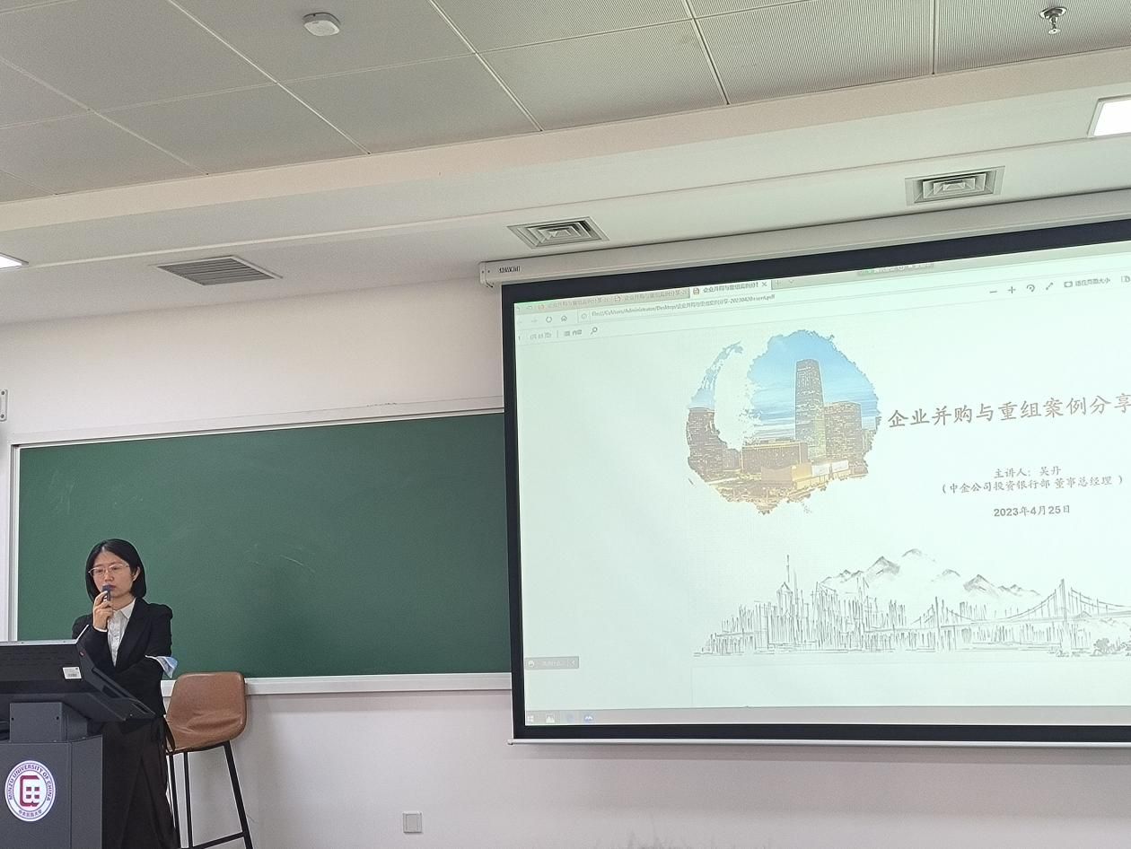 (中金公司投资银行部董事总经理吴丹在做讲座)