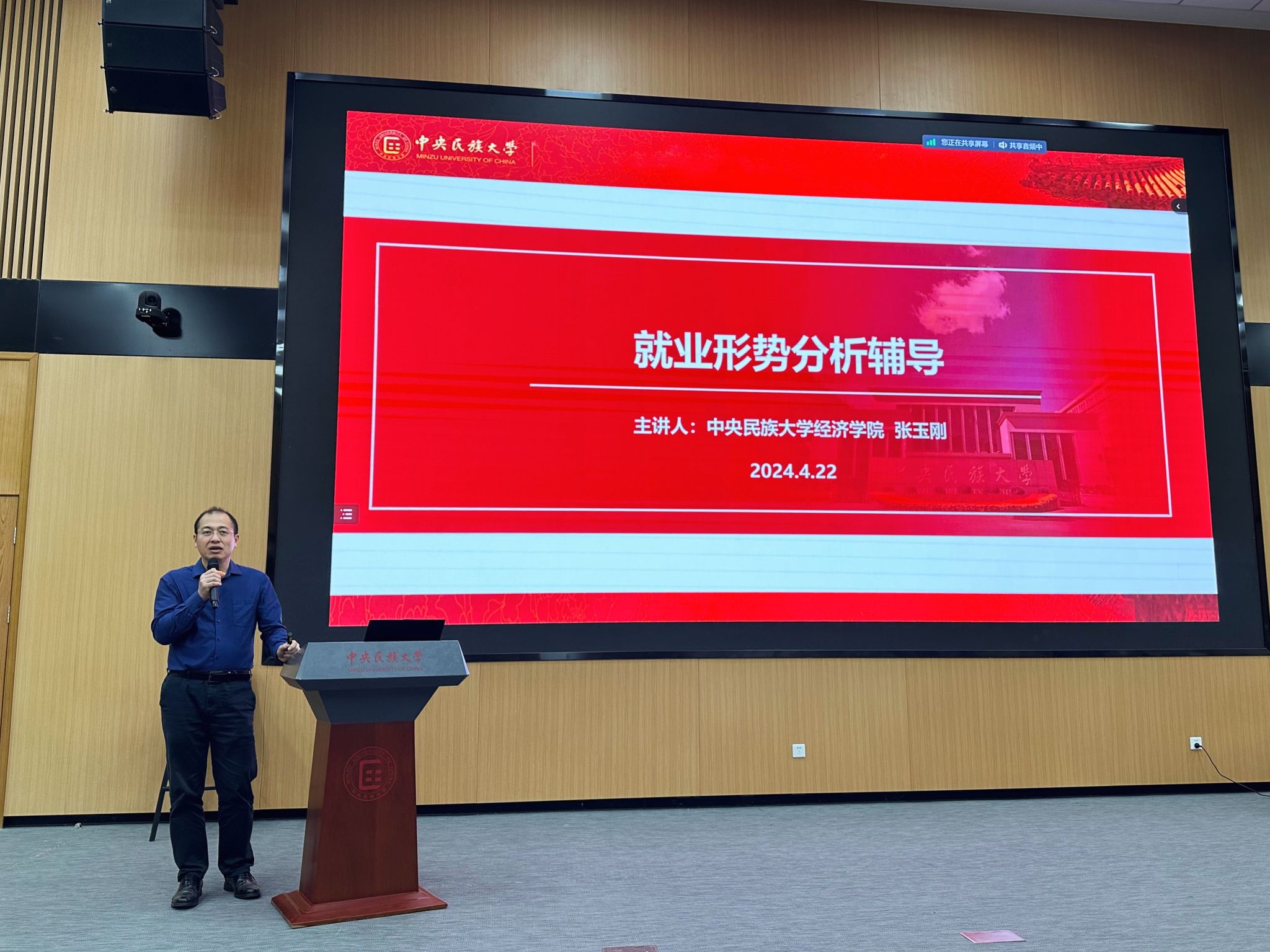 为帮助同学们充分了解当前高校毕业生就业形势及考研趋势,明确自身职业规划,提高考研能力及就业竞争力,来利国际旗舰厅于2024年4月22日晚上19:00在丰台校区图书馆北门报告厅举办“经英职导”系列活动之就业形势分析与求职升学准备专题讲座。讲座由经济公司党委书记张玉刚主讲,专职辅导员杨静主持。