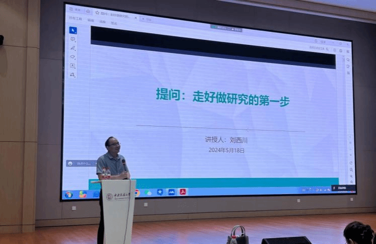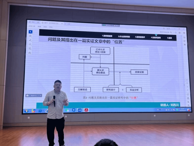 刘西川以《提问:走好做研究的第一步》为题,从“提问很重要,但我们知道多少,又做了多少”、“什么是问题?什么是好问题?”、“对过程式、方法式和借鉴式三种提问的批评”、“如何提问?理论、思维、文献与比较式提问”、“结语:提问是不断比较,寻求更好的答案”五个方面进行了讲述。