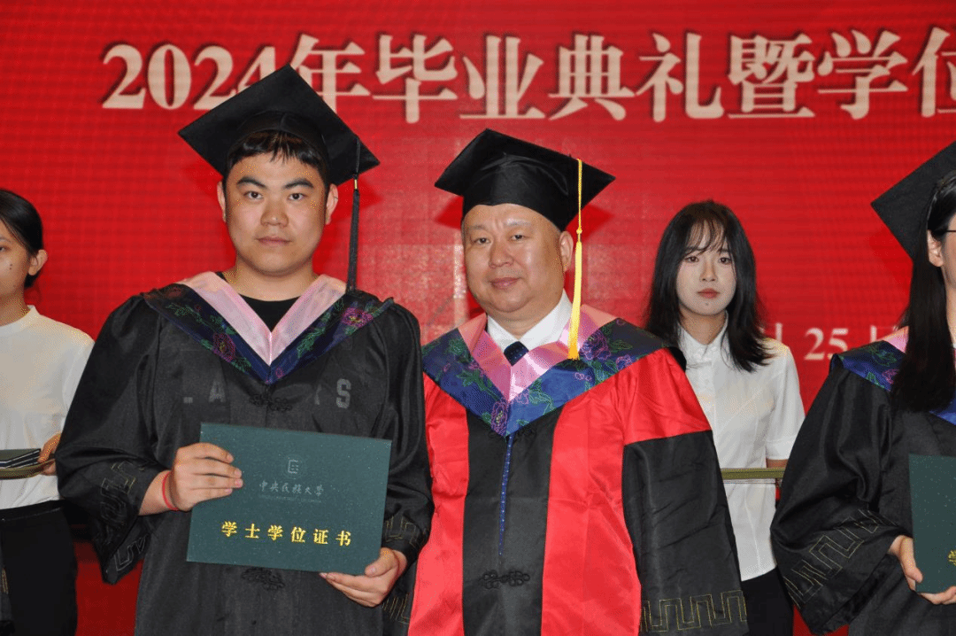 研究生代表张宁同学表示“与民大携手共度的三年,收获颇丰。对于我来说,民大已经不能仅用母校两字简单概括,感恩这座厚重的知识殿堂给予我们的一切。即刻起,我们中有的人将继续攀登学术高峰,有的人将踏入社会奋力拼搏。当你独自前行时,不要忘却在你背后屹立的是民大七十年的岁月华章,在你左右陪伴的是无数民大人的荣耀担当,而在我们前方的征途,是星辰大海,是无上荣光。”