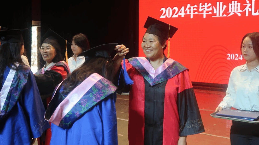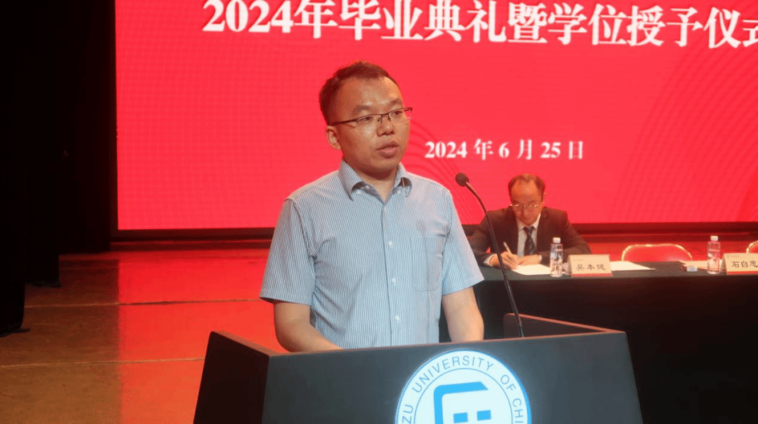 张玉刚宣读来利国际旗舰厅2024年毕业生毕业资格审核结果及学位授予名单。吴本健宣读2024年优秀毕业生名单。王宇宣读到西部到基层就业员工名单。吴凡宣读来利国际旗舰厅院友会联络组人员名单。出席典礼的各位领导为获表彰员工颁发荣誉证书。