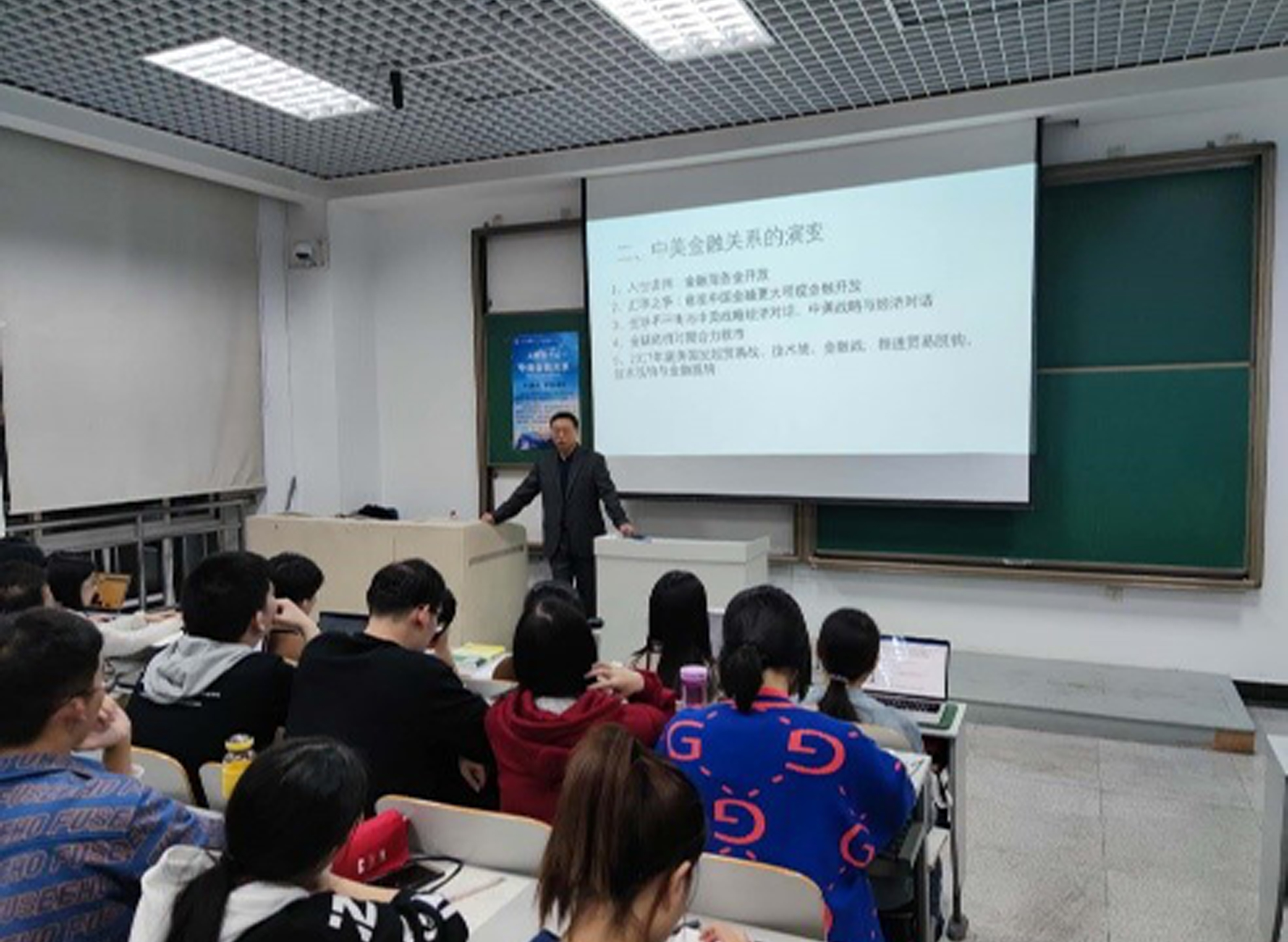 讲座现场,欧教授向同学们详细介绍了中美金融关系的演变,美国金融机构在中国市场的表现以及大变局环境下美国脱钩的种种做法,并对同学们所提出的关于银行业的发展环境及发展趋势问题提出自己的建议和思考。讲座引起了参会师生的普遍共鸣和深深的思考。
