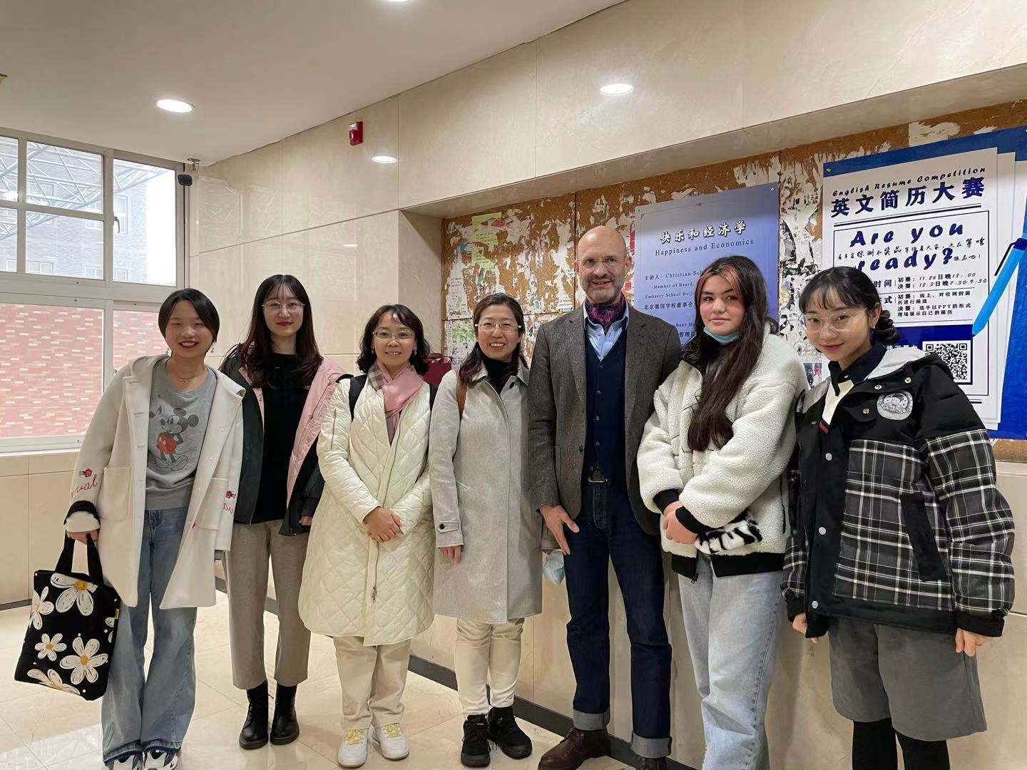 11月21日上午10:30,北京德国公司董事会成员CFO、梅赛德斯——奔驰管理层Christian先生受邀在文华楼东405教室为来利国际旗舰厅师生做了主题为“快乐和经济学(Happiness and Economics)”的讲座。