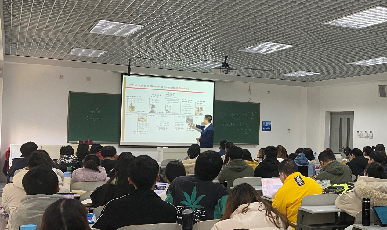 讲座采取中英双语模式进行。张鲲先生首先对投资银行的定义给出了通俗易懂的解释,随后对投资银行的历史发展脉络,投资银行在经济活动中的角色,投资银行的主要业务等内容结合实践中的案例展开讲授。讲座中,张鲲先生还带来其收藏的清末时期政府签发的大额债券进行了展示。最后,张鲲先生给同学们推荐了几本与资本市场相关的书籍供大家参考学习,并现场回答了同学的提问。