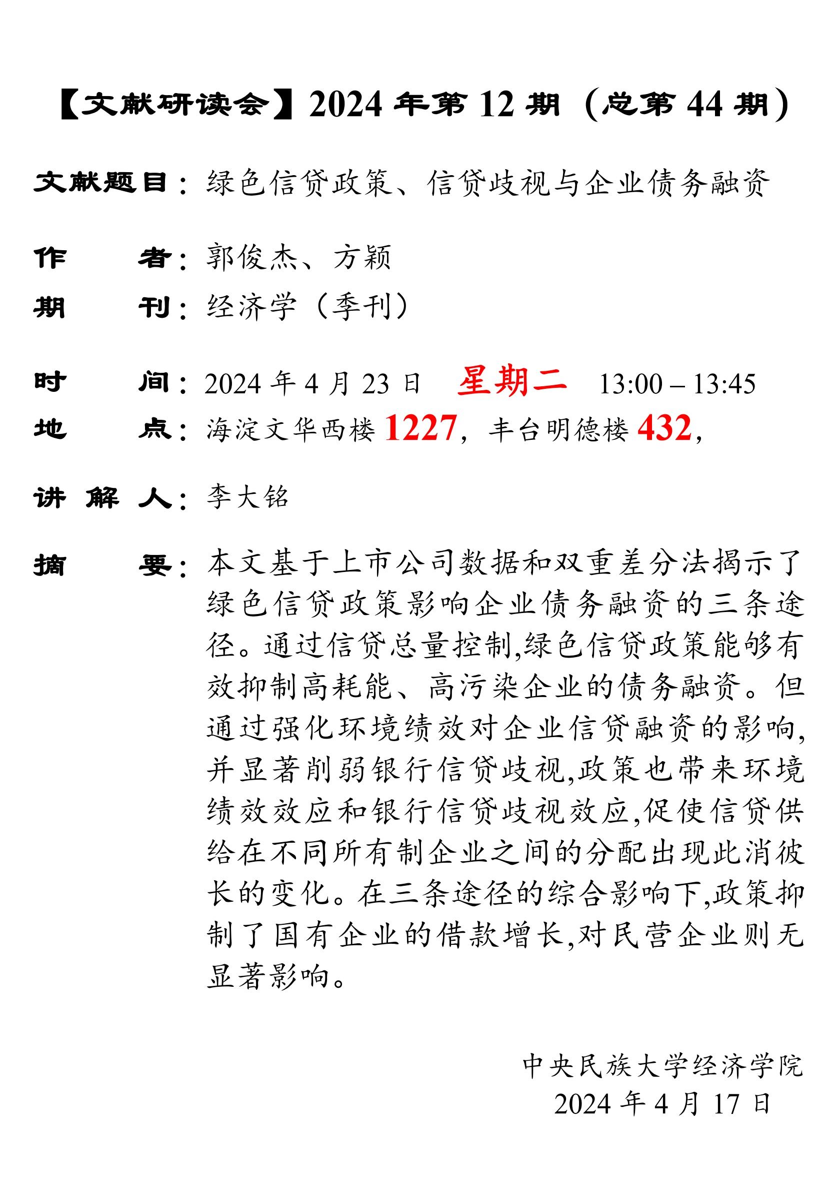【文献研读会】 2024 年第 12 期(总第 44 期)